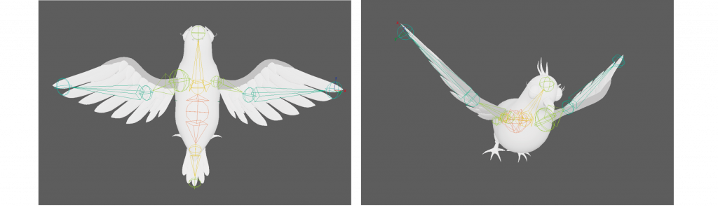 I began by creating a simple rig for the bird, which enabled me to animate its flying motion. My main focus was achieving a sense of smoothness and natural movement. I paid particular attention to ensuring that the wing motion influenced the rest of the body, allowing secondary elements such as the belly and tail to respond organically, which helped give the animation a more cohesive and believable feel.