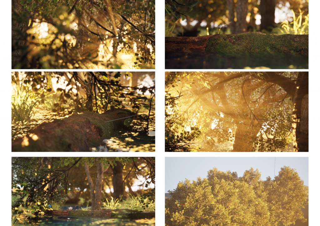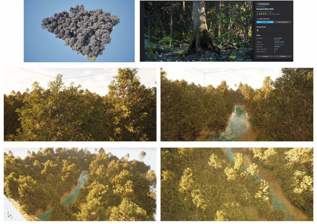 To build the environments, I used the Black Alder tree and foliage pack from Quixel Megascans, which allowed me to achieve a rich, natural setting.